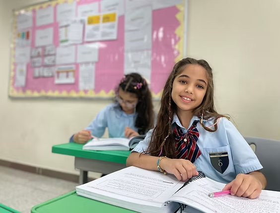A model building with equipment that achieves the highest levels of advanced educational services and diverse references to keep pace with the latest developments in modern education, including laboratories, libraries, electronic classrooms and gymnasiums.